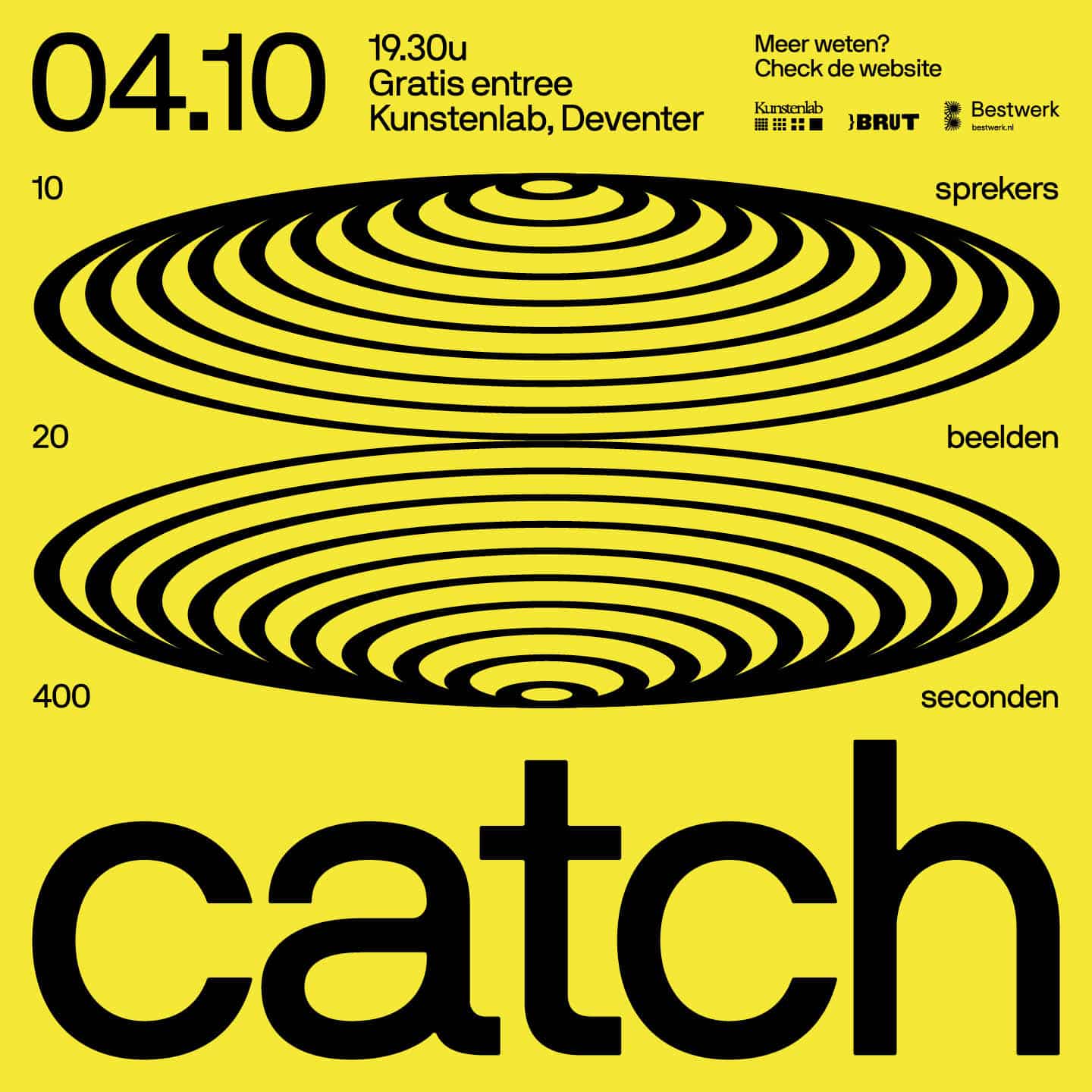 De catch vindt plaats op vrijdag 4 oktober 2024 om 20:00 uur (inloop vanaf 19.30 uur) bij Kunstenlab in Deventer. De entree is gratis en netwerken doe je voor, tijdens en na afloop met een drankje.