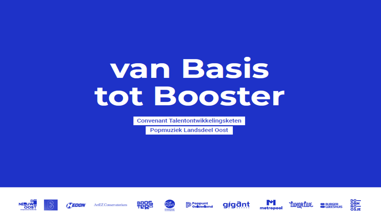 Het Oosten is volgens het spreekwoord de richting die de wijsheid brengt. In het huidige muzieklandschap van Overijssel en Gelderland, is die bekwaamheid uit het Oosten er daadwerkelijk te vinden. Naast de grote poppodia Doornroosje, Luxor Live, GIGANT, Burgerweeshuis, Hedon en Metropool, zijn er drie productiehuizen/ontwikkelinstellingen (De Nieuwe Oost | pop, Hedon Productiehuis en De Basis) die zich richten op talentontwikkeling. Ook kennen beide provincies een eigen Poppunt, conservatorium ArtEZ en een uitgebreid netwerk van speel, oefen- en maakplekken, met daarbij Booster als hét showcase festival van de regio.